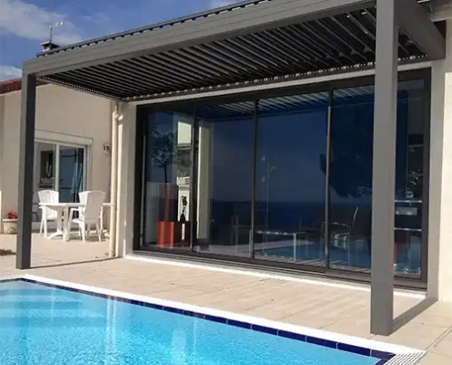Avec une toiture constituée de lames orientables à double parois en aluminium, la pergola bioclimatique permet de choisir l’apport de lumière adaptée à votre terrasse.